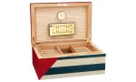 - Elegant ontwerp: Het adembenemende motief van de Cubaanse vlag siert het oppervlak van deze humidor, waardoor het een onderscheidend, cultureel tintje krijgt. De fijn bewerkte houtnerf blijft ondanks de hoogglans lak zichtbaar, waardoor de humidor een unieke, natuurlijke esthetiek krijgt.