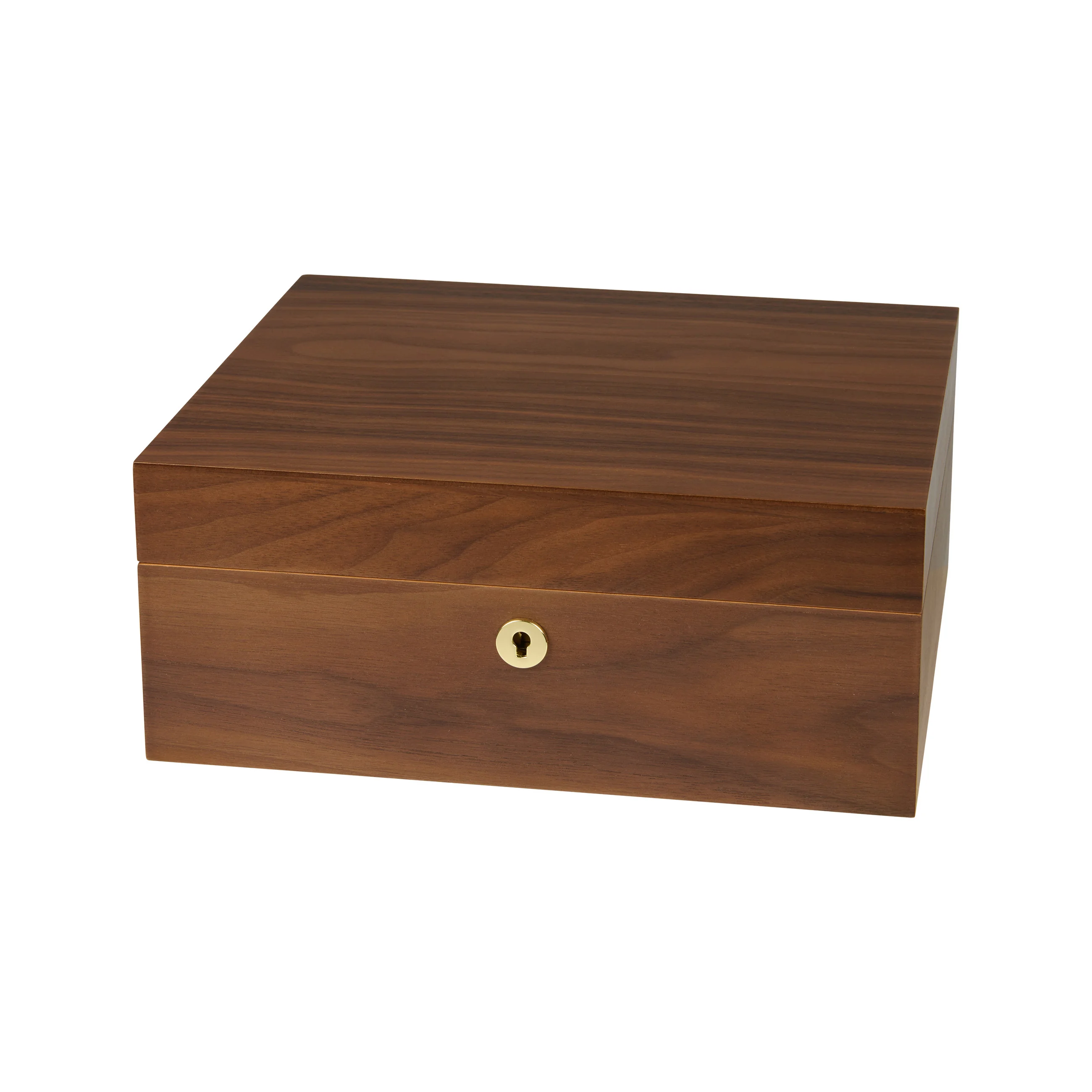Het walnotenhout valt op door zijn karakteristieke nerf met warme tot donkerbruine tinten. Dankzij zijn warme en natuurlijke uitstraling past de humidor bijna overal bij. Middelgrote humidors kunnen tot 75 sigaren bevatten, dus genoeg ruimte voor uw sigarencollectie.