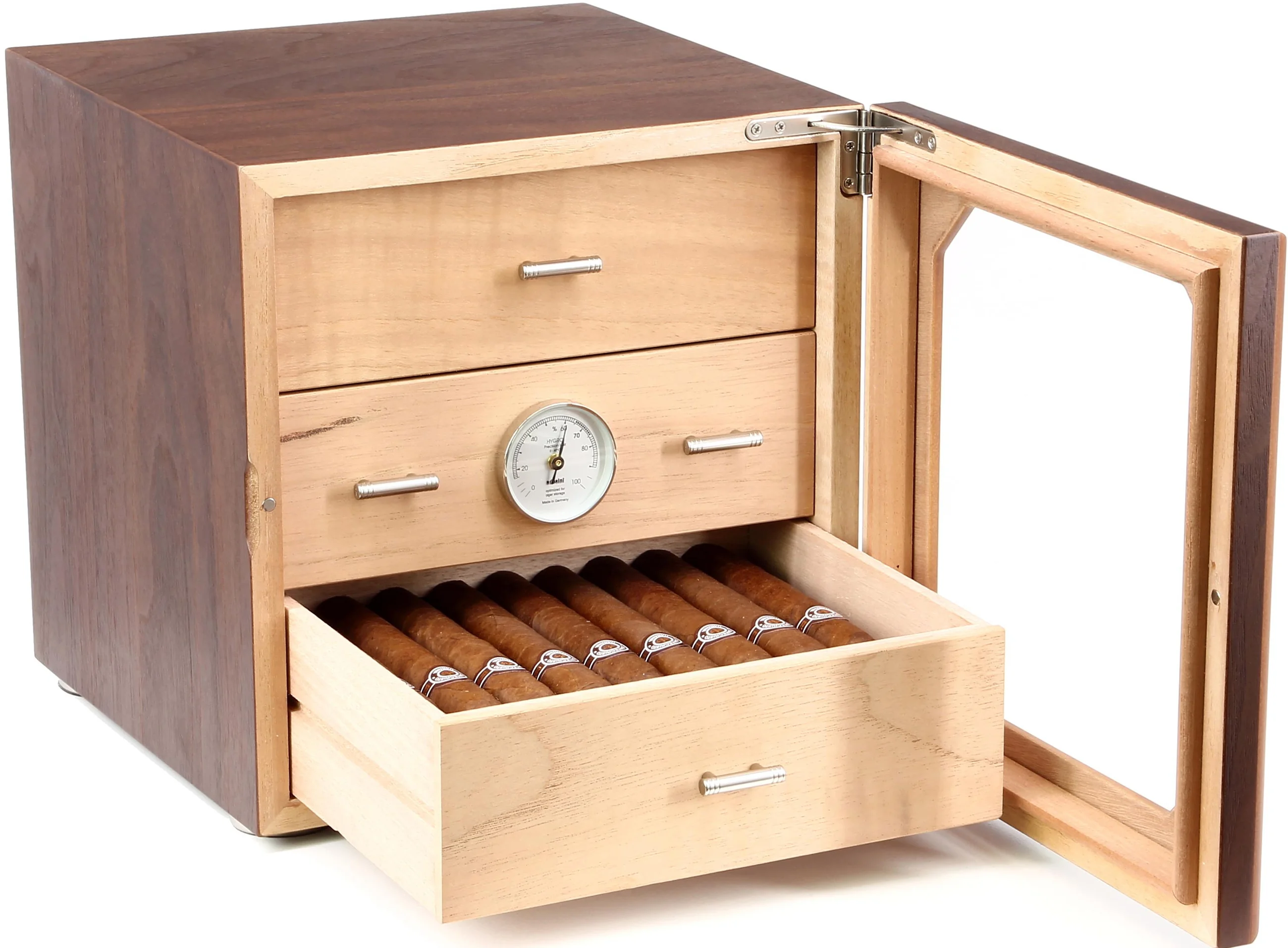 - Gecalibreerde, zeer precieze haarhygrometer, geoptimaliseerd voor het bewaren van sigarenVor-kalibrierter hoch präziser Haar-Hygrometer, optimiert für die Lagerung von Zigarren