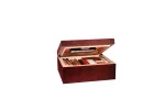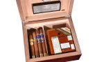Deze moderne en functionele humidor uit de adorini baisis serie in maat M maakt indruk met zijn matte afwerking, mooie nerf en veelzijdigheid. Met ruimte voor ongeveer 75 sigaren of kleinere sigarenkistjes biedt hij een ideale oplossing voor het veilig bewaren van uw sigaren. Hij wordt geleverd met een analoge hygrometer en een passieve sponsbevochtiger. De hygrometer meet de luchtvochtigheid met behulp van een metalen spoel en is samen met de luchtbevochtiger magnetisch en flexibel bevestigd aan het deksel van de humidor. De humidor heeft matzilveren scharnieren aan de binnenkant en een bijzonder sterke afdichtingslip die ervoor zorgt dat de luchtvochtigheid optimaal wordt vastgehouden. Een verticale verdeler zorgt voor extra compartimentering van het interieur.