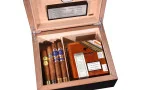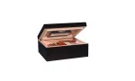De moderne en functionele humidor van het merk adorini uit de Basic serie in maat M maakt indruk met zijn matzwarte uiterlijk en veelzijdigheid. Met ruimte voor ca. 75 sigaren of kleinere sigarenkistjes biedt hij een ideale oplossing voor het veilig bewaren van uw sigaren. De levering bevat een analoge hygrometer en een passieve sponsbevochtiger. De hygrometer meet de luchtvochtigheid op basis van een metalen spiraal en wordt samen met de luchtbevochtiger magnetisch en flexibel bevestigd aan het deksel van de humidor. De humidor heeft matzilveren scharnieren aan de binnenkant en een bijzonder sterke afdichtingslip, die zorgt voor een optimaal behoud van de luchtvochtigheid. Een verticale verdeler zorgt voor extra indeling van het interieur.