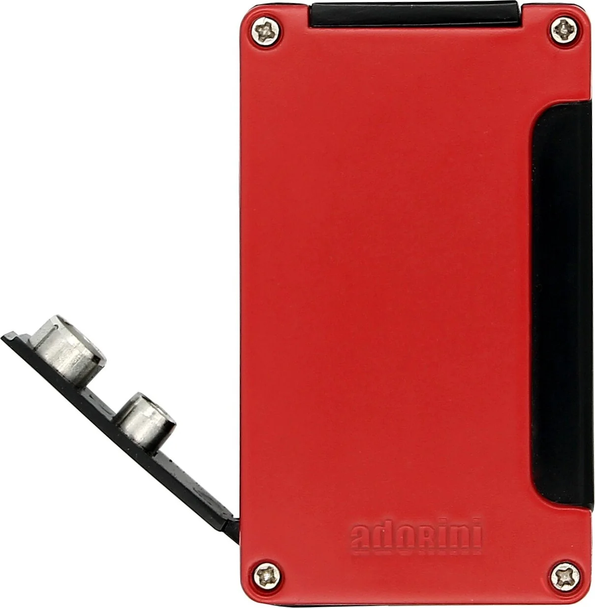 Er zijn in totaal zes kleuren waaruit je kunt kiezen, maar geen enkele trekt zo de aandacht als de adorini Jet Lighter Red. De duurzame roestvrijstalen body is in zwart gehuld, terwijl de voor- en achterkant in het oog springen met een prachtige rode lakafwerking.