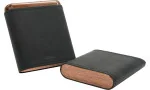 - Echt (mat)zwart leer plus echt houten boven- en onderkant
