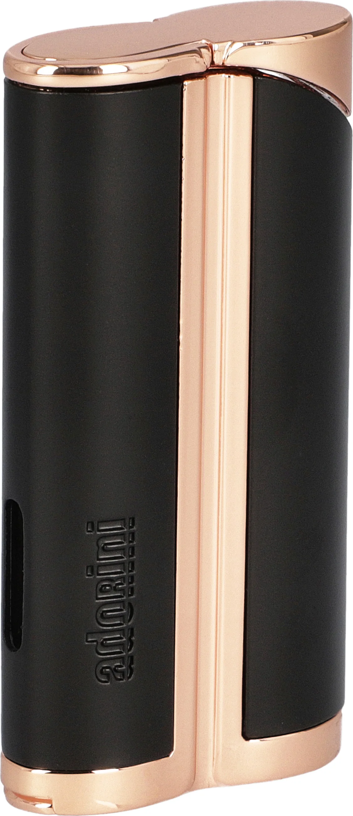 adorini Single Jet Curve Aansteker Zwart / Roségoud incl. Sigarenknijper