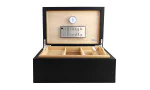 Een precieze en vooraf gekalibreerde haarhygrometer, gemaakt in Duitsland, maakt een nauwkeurige controle van de luchtvochtigheid mogelijk. Beide elementen kunnen magnetisch, handig en ruimtebesparend aan het deksel van de humidor worden bevestigd.