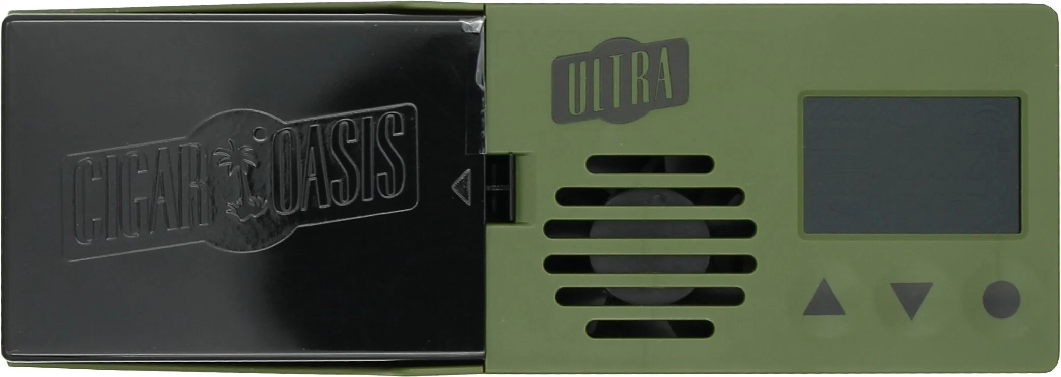 De Cigar Oasis Ultra 4.0 is een elektronische luchtbevochtiger van de laatste generatie (vanaf 2025) en is speciaal ontwikkeld voor tafelmodel humidors met een capaciteit van 50 tot 150 sigaren. Het apparaat wordt geleverd in een moderne olijfgroene kleur en maakt indruk met zijn ultraslanke, ruimtebesparende ontwerp.
