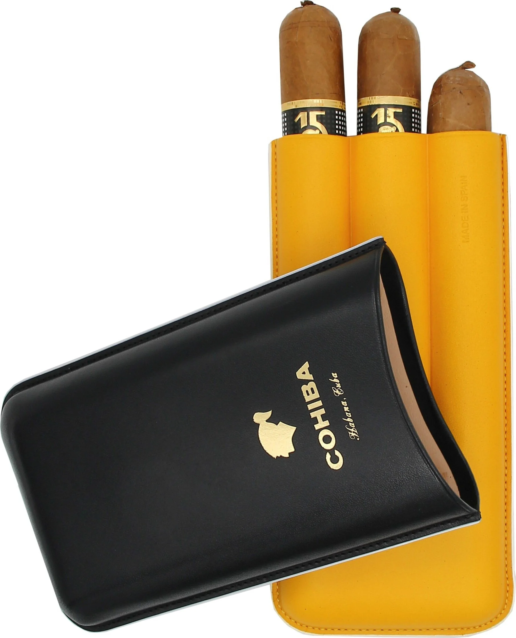 Cohiba Leren Sigarenkoker in Zwart, Geel en Wit