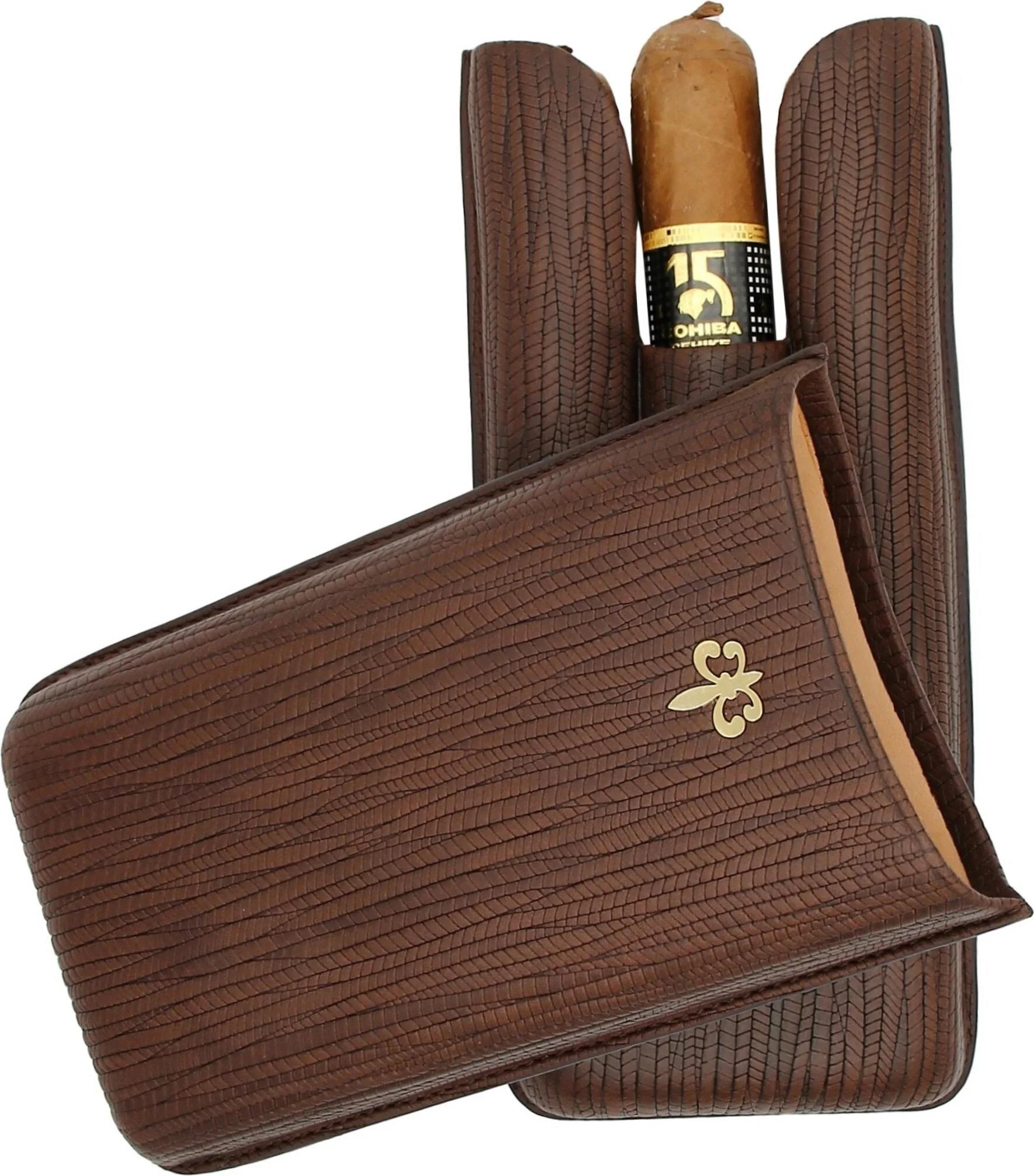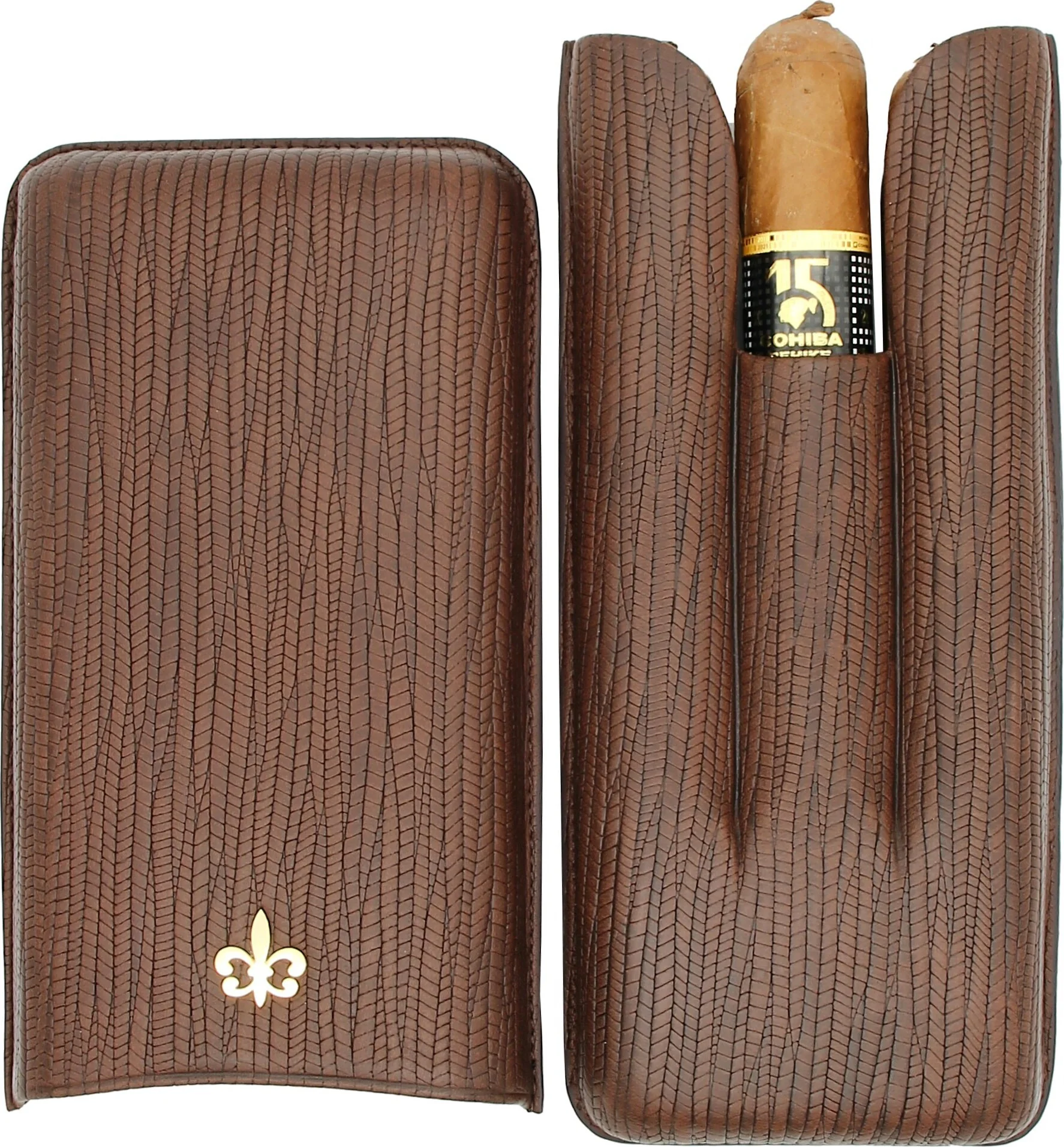 Montecristo Fleur de Lis Leren Sigarenkoker, Bruin, voor 3 Sigaren