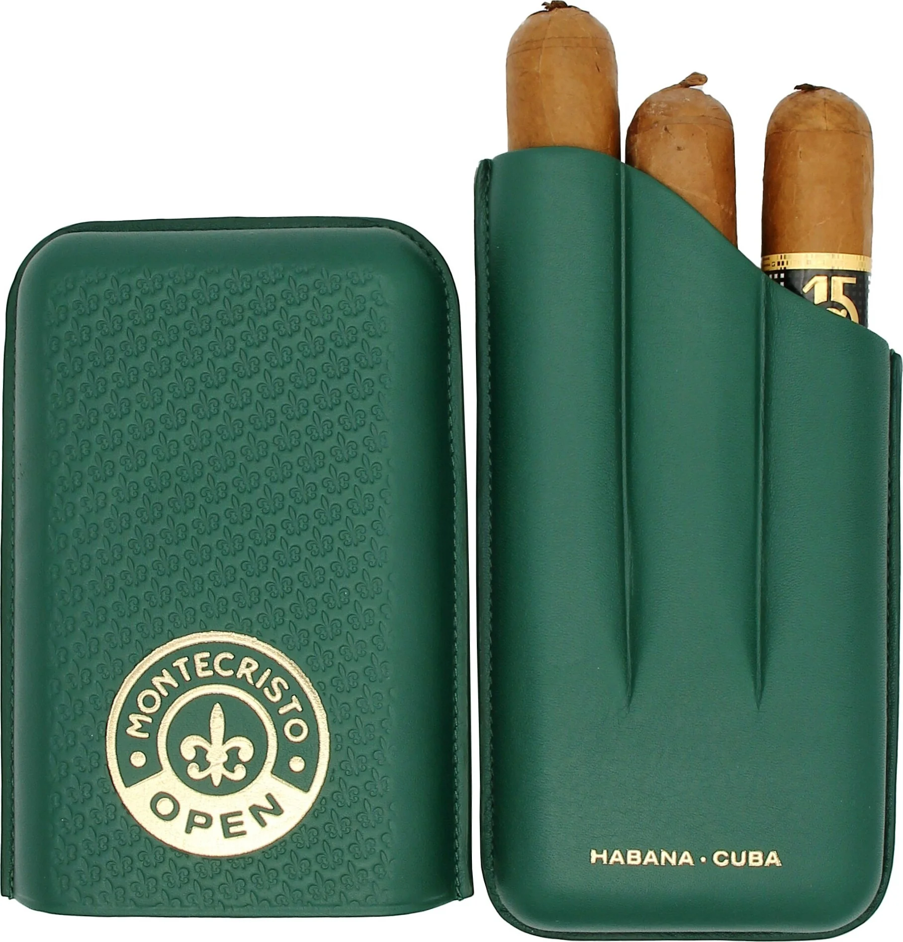 Montecristo Open Leren Sigarenkoker, Groen, voor 3 Sigaren