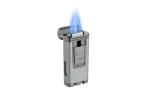 De **Palio Polaris Jet Aansteker in Zilver** is een hoogwaardige jet aansteker met een slanke mat zilveren afwerking en elegante glanzende accenten. Met drie krachtige jet vlammen die samensmelten tot een betrouwbare brander, biedt deze aansteker een consistente ontsteking voor sigarenliefhebbers. De ontsteking wordt afgeschermd door een beschermkap, die stof en pluizen weghoudt voor langdurige prestaties. Het Palio logo staat prominent op de ontstekingsschakelaar aan de voorkant, die de aansteker met een soepele beweging naar beneden ontsteekt. Door het grote, transparante gasvenster aan de linkerkant kunt u het brandstofniveau gemakkelijk controleren. Natuurlijk is de aansteker navulbaar en de intensiteit van de vlam kan gemakkelijk met de hand worden aangepast aan de onderkant van de aansteker zonder extra gereedschap.