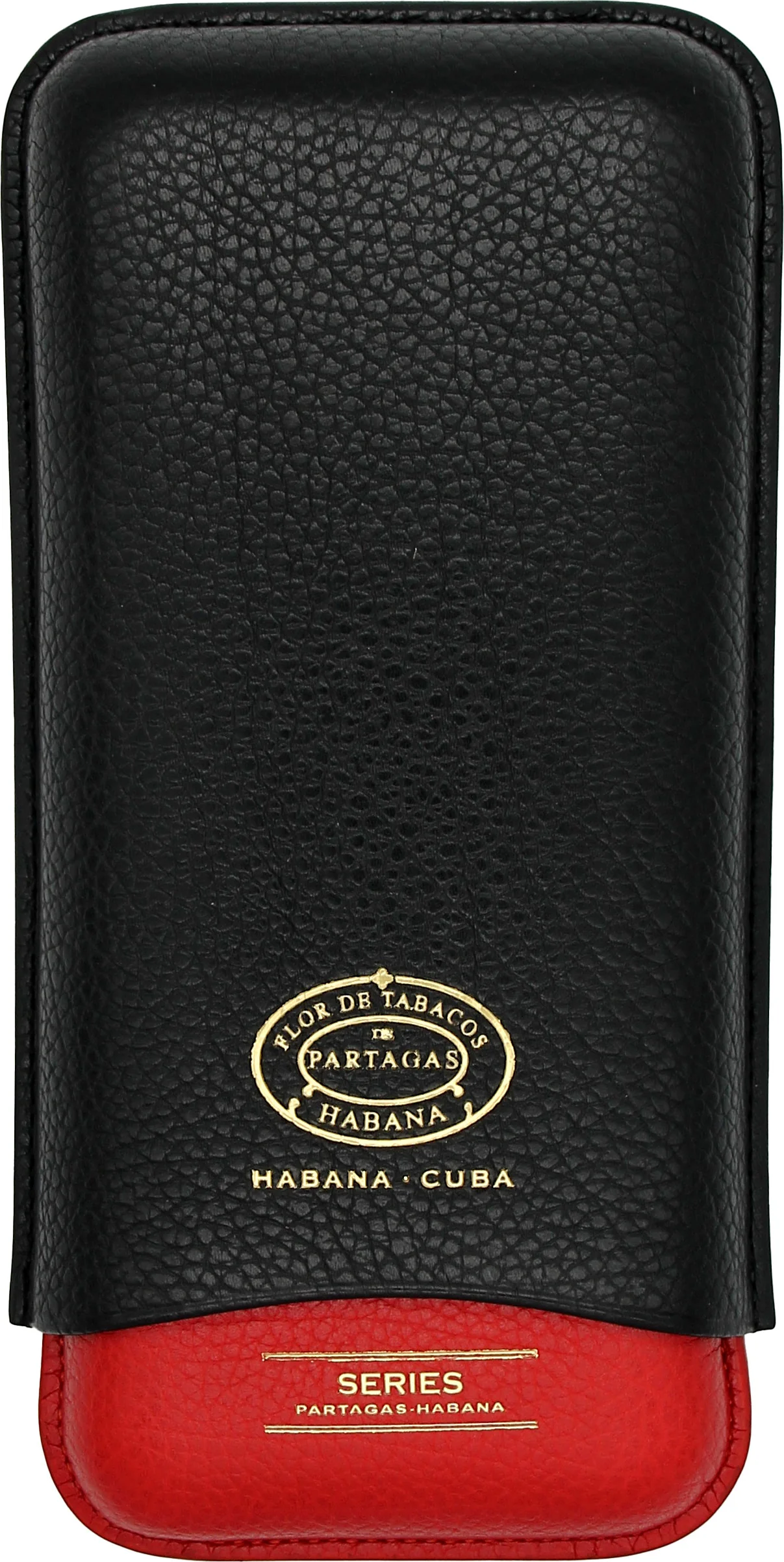 De **Partagás Serie Lederen Koker in Zwart & Rood** is een luxe sigarenkoker van het bekende Cubaanse sigarenmerk Partagás. Hij valt op door zijn klassieke ontwerp met een elegante zwarte bovenkant, een opvallende rode onderkant en een gouden logo in reliëf. De etui is gemaakt in Spanje en toont uitzonderlijk vakmanschap, wat wordt benadrukt door de discrete "Made in Spain" inscriptie op het leer van de basis.