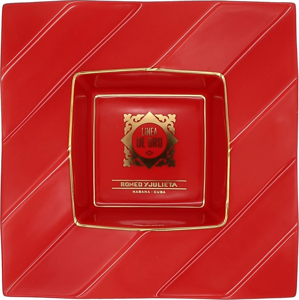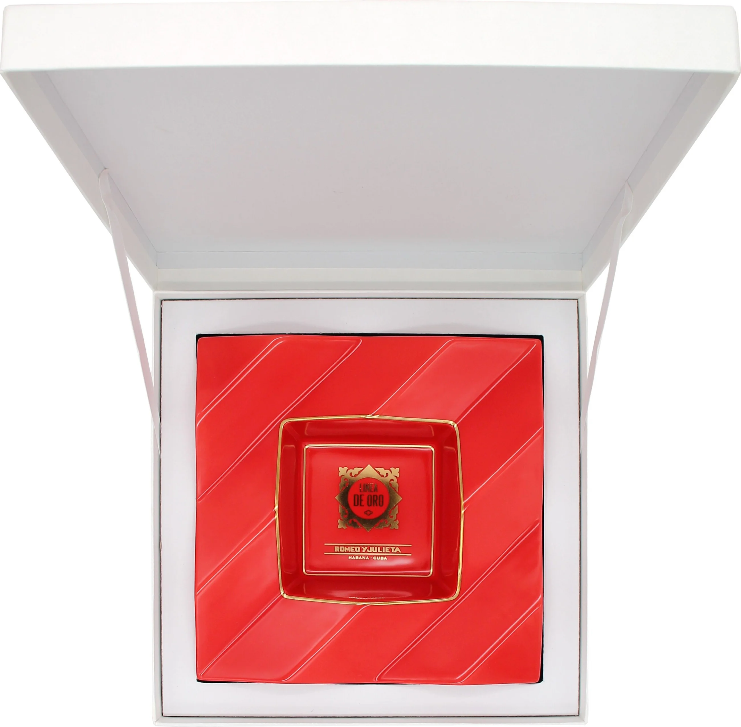 De Romeo y Julieta Asbak Línea de Oro is een uitzonderlijk design object geproduceerd in een strikt gelimiteerde oplage van slechts 250 stuks wereldwijd. Deze asbak is gewijd aan de premium Línea de Oro-lijn van het Cubaanse sigarenmerk Romeo y Julieta en heeft het kenmerkende levendige rood van het merk, gecombineerd met elegante accenten van echt goud. De exclusieve kleurencombinatie geeft het stuk een opvallende aantrekkingskracht en maakt het een zeer gewild verzamelobject.