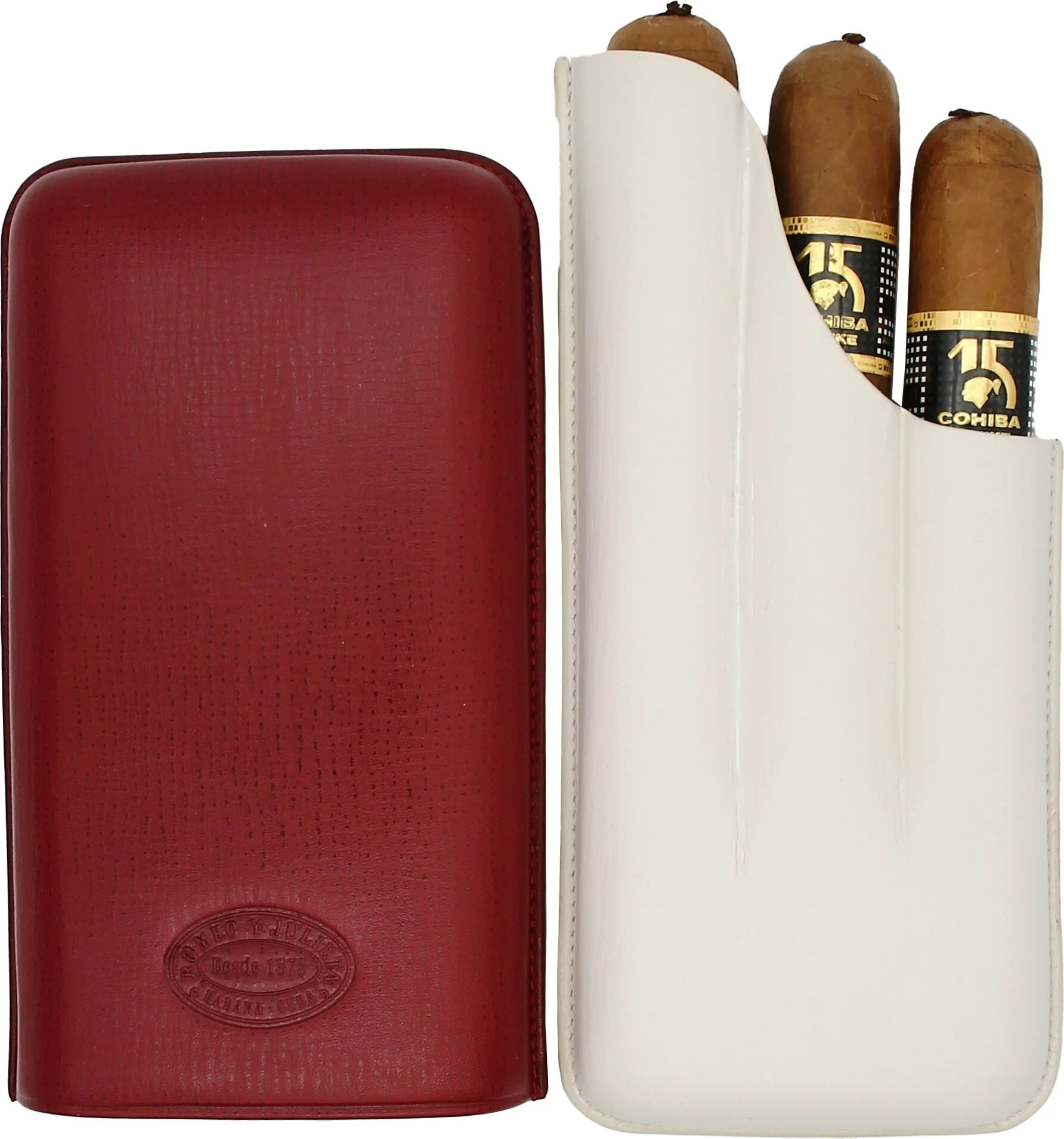 De etui is ontworpen als een telescopische etui, waardoor de lengte verstelbaar is. Ingeklapt meet hij ongeveer 19 cm en uitgeschoven ongeveer 22 cm. Met een breedte van 9 cm en een diepte van 4 cm biedt hij ruimte voor drie stevige sigaren, waardoor zelfs grotere formaten veilig vervoerd kunnen worden. De binnendiameter van 2,5 cm biedt ruimte aan sigaren tot een ringmaat van 62. De gehele binnenkant is bekleed met lichtgekleurd, glad leer, waardoor de sigaren optimaal worden beschermd.