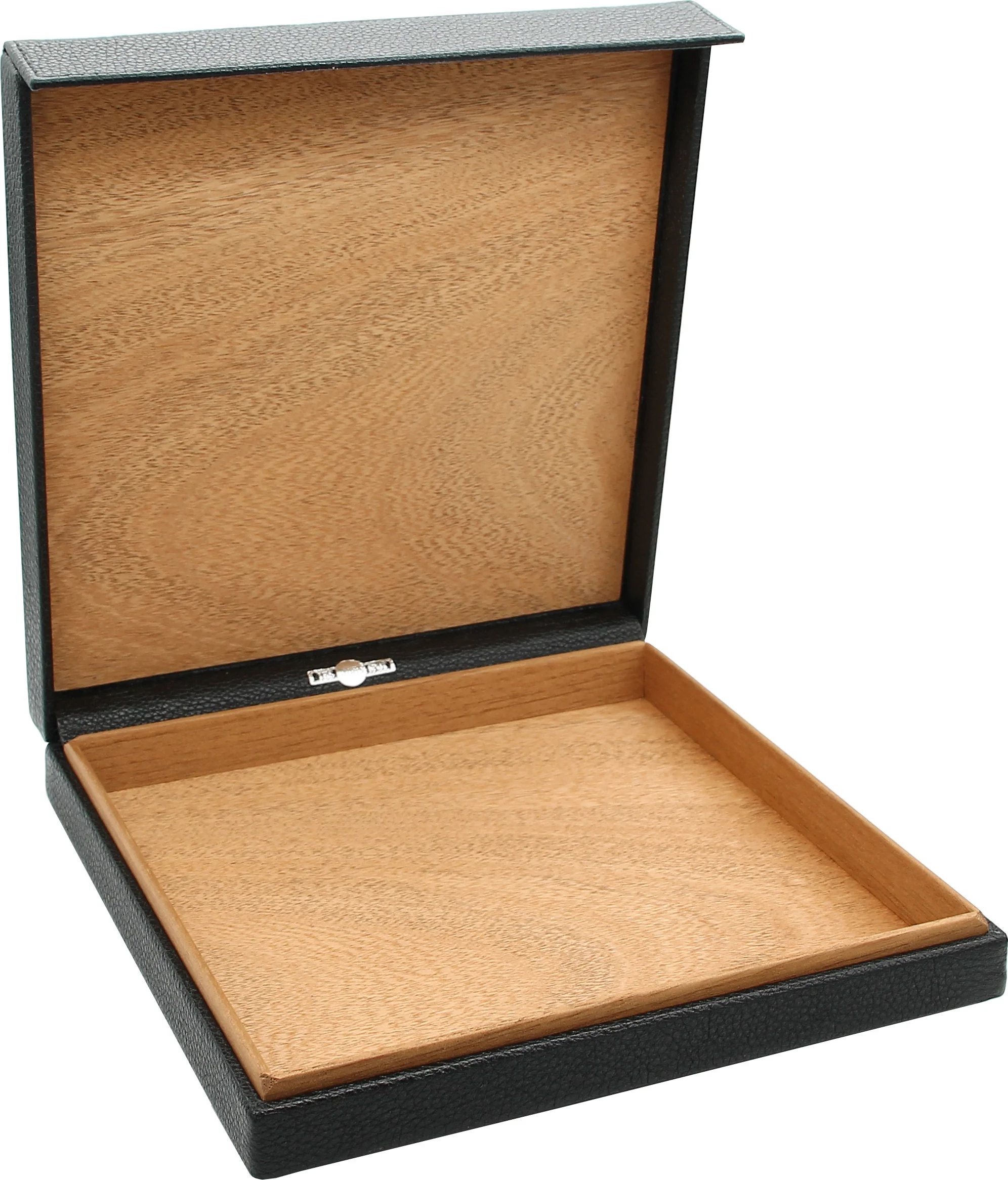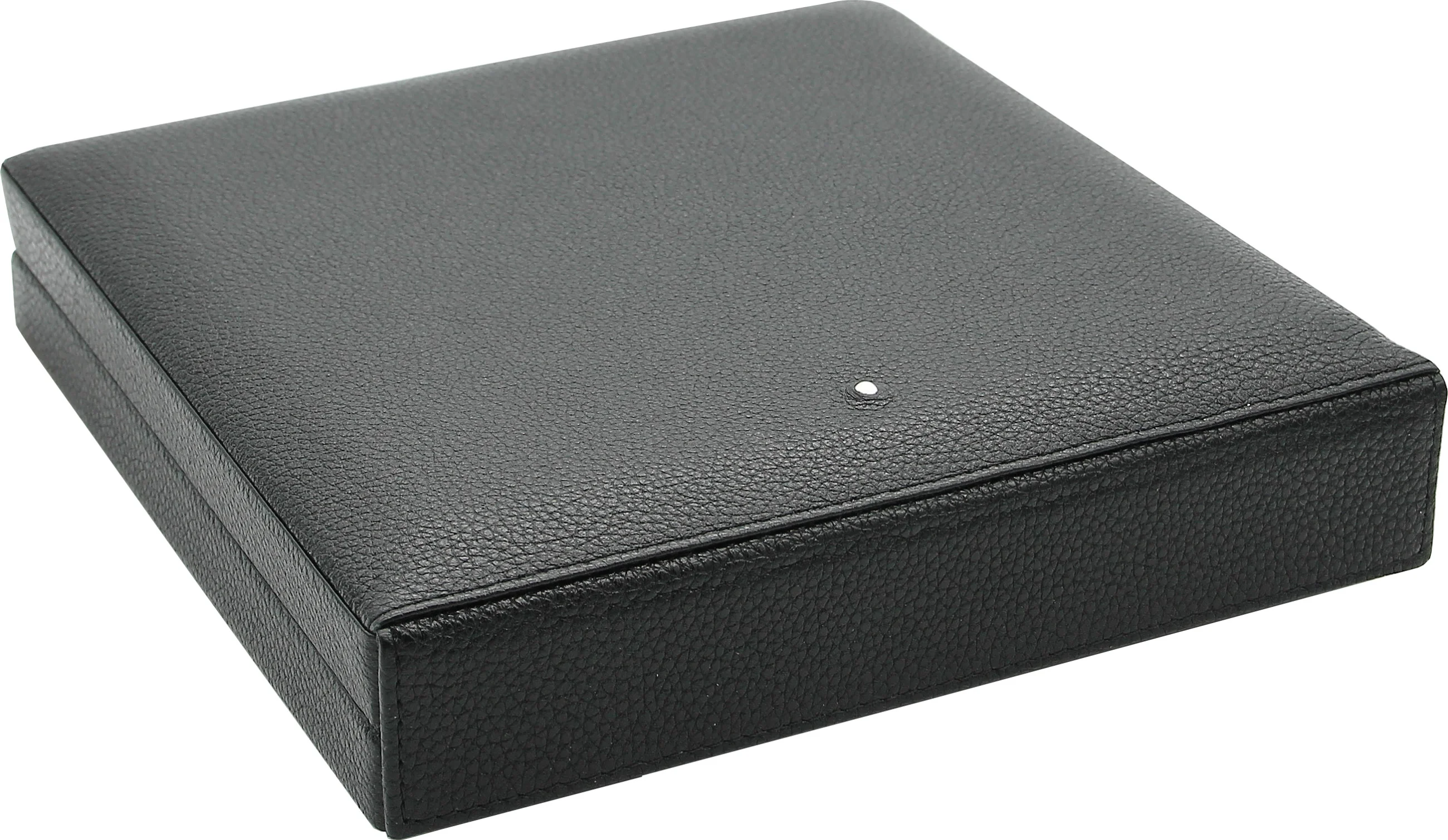 Deze elegante reishumidor in het zwart van het gerenommeerde Engelse erfgoedmerk Dunhill is de perfecte reisgenoot. Bekleed met het fijnste generfde leer uit Spanje en gevoerd met hoogwaardig hout, biedt hij ruimte en bescherming voor ongeveer 10 sigaren. De sluiting is een magneetsluiting verborgen onder het leer. Het White Spot symbool in reliëf in het leer is een onmiskenbaar Dunhill handelsmerk. Een verfijnde reishumidor die uw sigaren stijlvol beschermt en een betrouwbare metgezel blijkt te zijn op al uw reizen en uitstapjes.