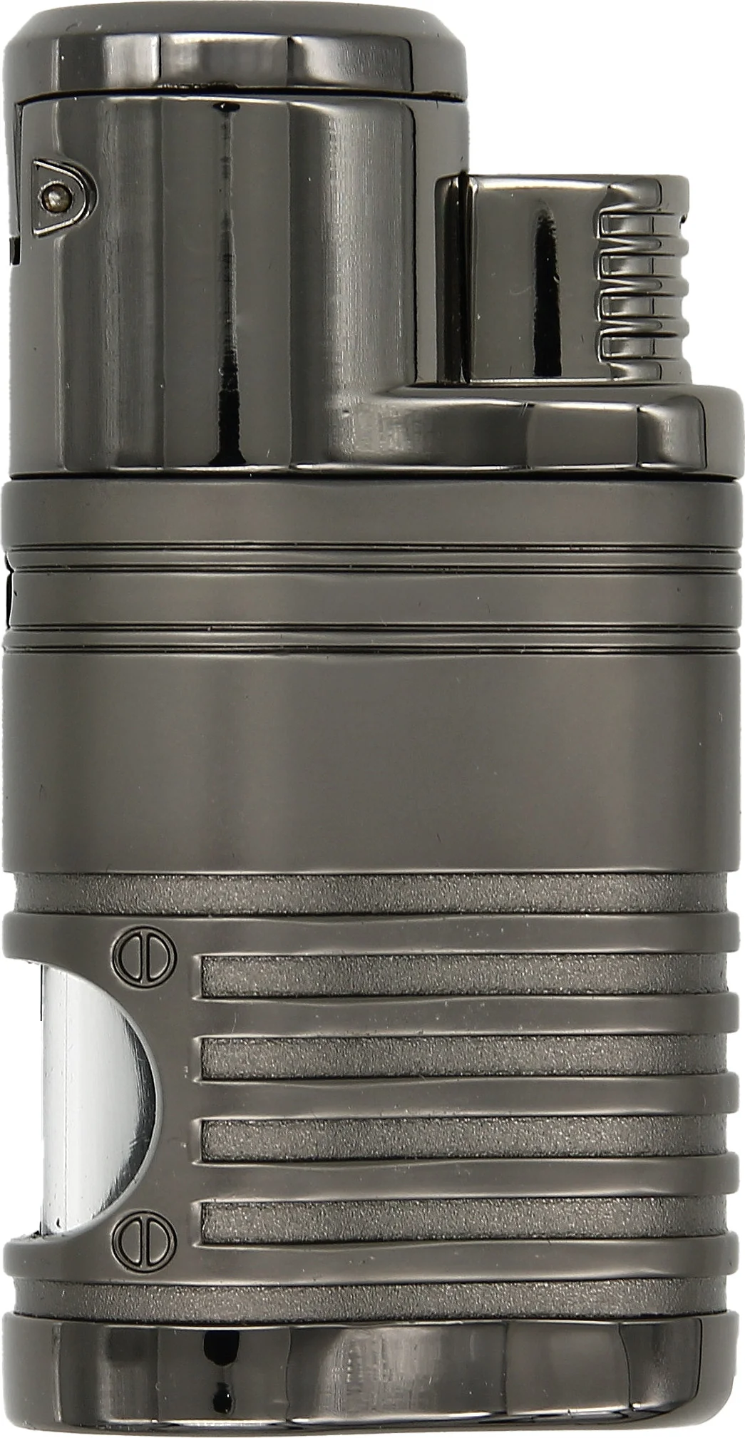 De vier jet-vlammen van de aansteker komen in actie met slechts één druk op de knop, elke vlam versmelt met de ander om de ultieme windbestendige vlam te creëren. U kunt die intense hitte gebruiken om uw sigaren aan te steken met een ongeëvenaarde snelheid en efficiëntie, ongeacht die vervelende windstoten. Er is ook een handige sigaren ponsknipper die uit de onderkant klapt zodat u uw sigaren kunt snijden en aansteken, met dit ene gemakkelijk bij u te dragen stuk gereedschap.