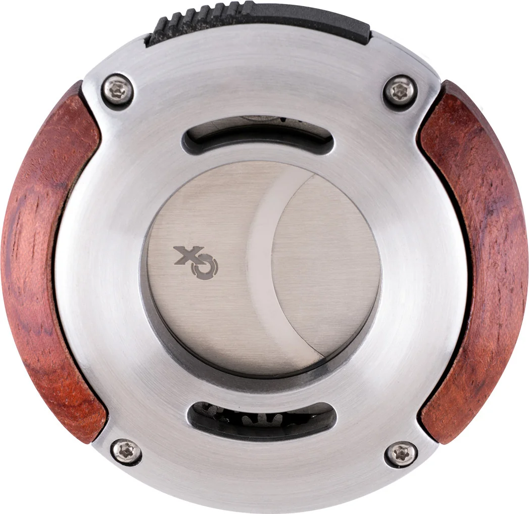 De gehoekte roestvrijstalen bladen glijden soepel door de sigaarkop en zorgen voor een zuivere snede zonder de tabak te pletten. Met een openingsdiameter van 2,8 cm is de XO cutter ook geschikt voor bijzonder volumineuze sigaren.